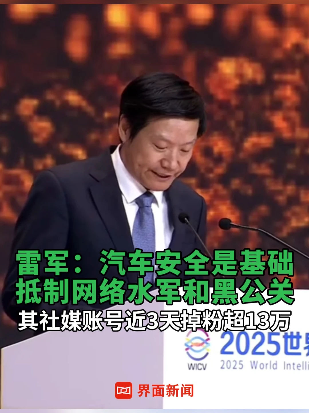 #雷军:汽车安全是基础,抵制网络水军和黑公关,其社媒账号近3天掉粉超13万 #雷军 #小米汽车 #智能网联汽车 #网络水军